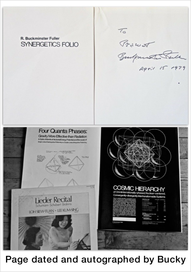 I remembered that it was quite a memorable but hectic evening, with so much joy that I forgot to grab a camera for photos. My memories of 41 years ago still remain alive with Bucky’s autograph in the copy of “Synergetics Folio” given to me, signed on April 15 1979.